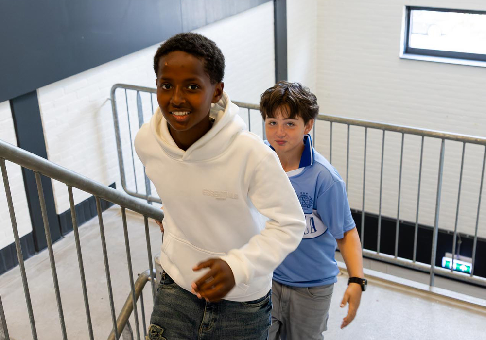 Je krijgt meer vakken, verschillende docenten, elk uur een ander leslokaal. Je draagt een tas met zware boeken en je krijgt huiswerk. Dat wordt even wennen. We helpen je erbij. We leren je hoe je het beste kunt leren. We maken je wegwijs op school. Je maakt nieuwe vrienden. Echt, je vindt vanzelf je draai. Iedereen voelt zich al snel thuis. Jij ook.